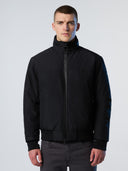 Das Kleidungsstück besteht aus einem windundurchlässigen Material, das den Wärmeverlust verhindert, indem es die Körperwärme im Inneren des Kleidungsstücks hält.