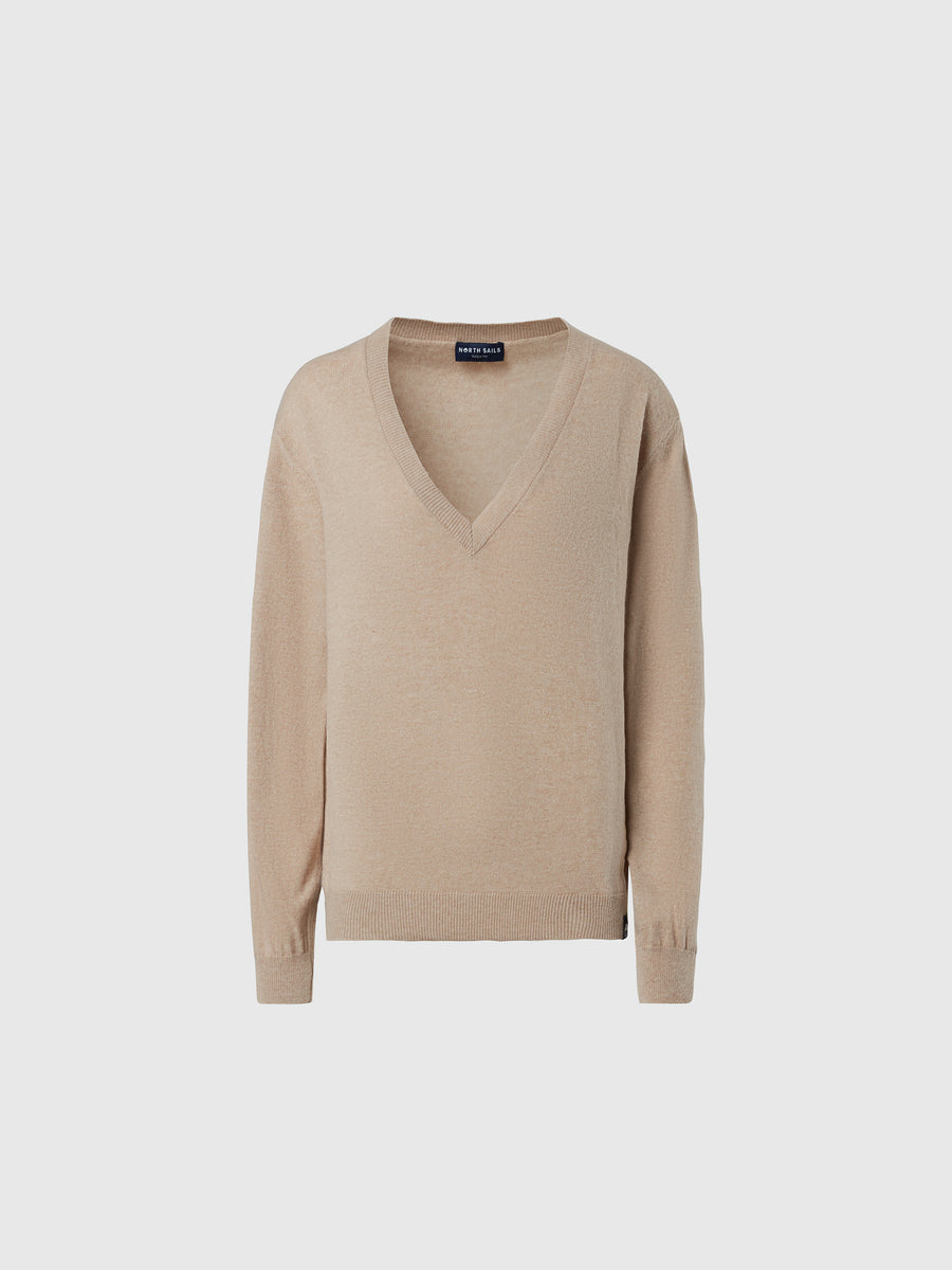 Ein schlichtes Teil für kühlere Tage: Dieser Pullover eignet sich perfekt für die Übergangszeit. Das Kleidungsstück aus einer superweichen Kaschmirmischung, die recycelte Fasern enthält, ist gleichermaßen für Komfort und Umweltbewusstsein konzipiert. Seine lässige Passform mit tiefem V-Ausschnitt macht mühelos jeden Lagenlook über einem Hemd oder einer Bluse mit und sorgt für femininen Charme mit entspannter Attitude.