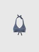 Women's padded bikini top made from eco LYCRA®, produced from recycled materials. Striped design with adjustable ties.