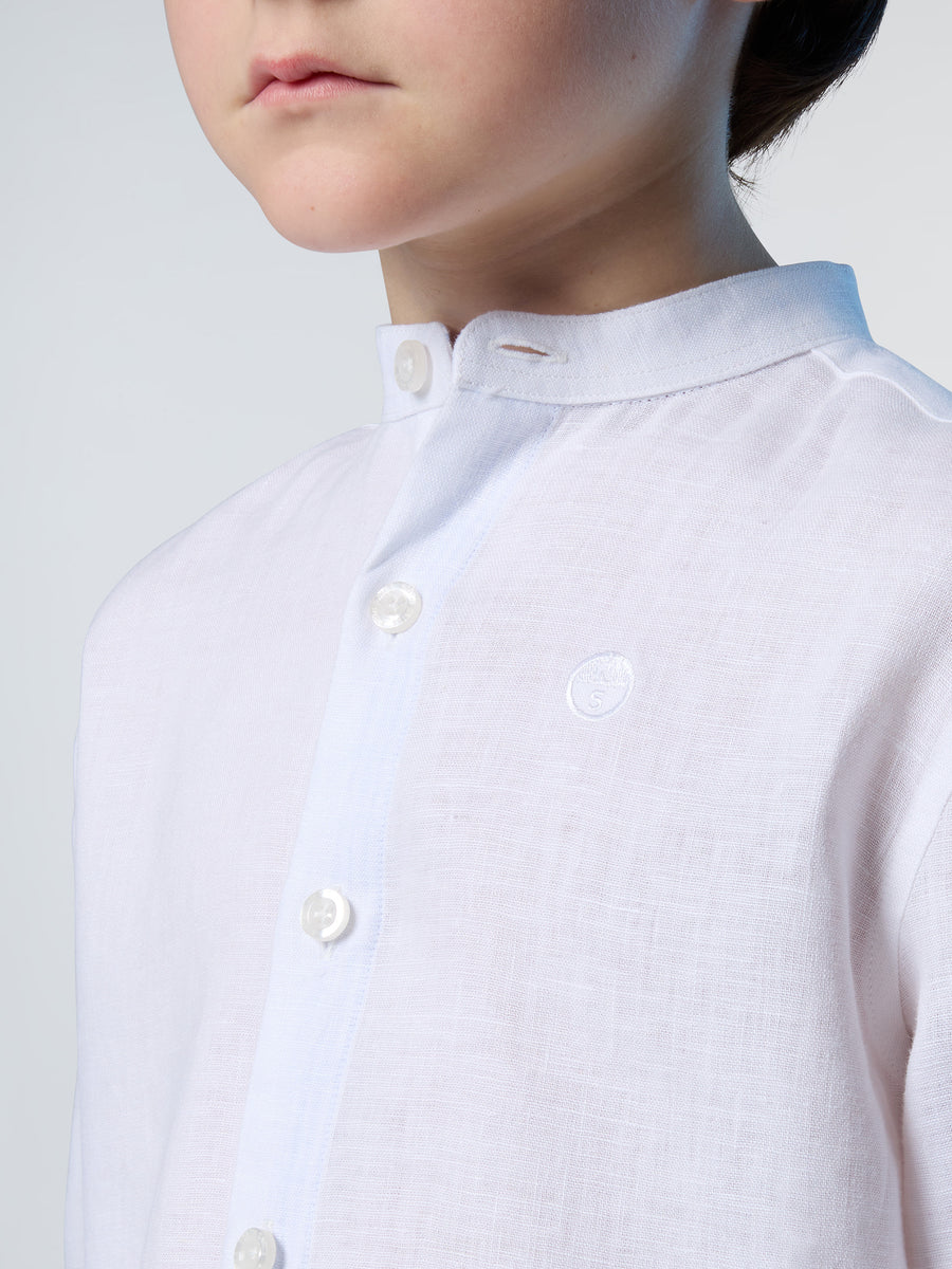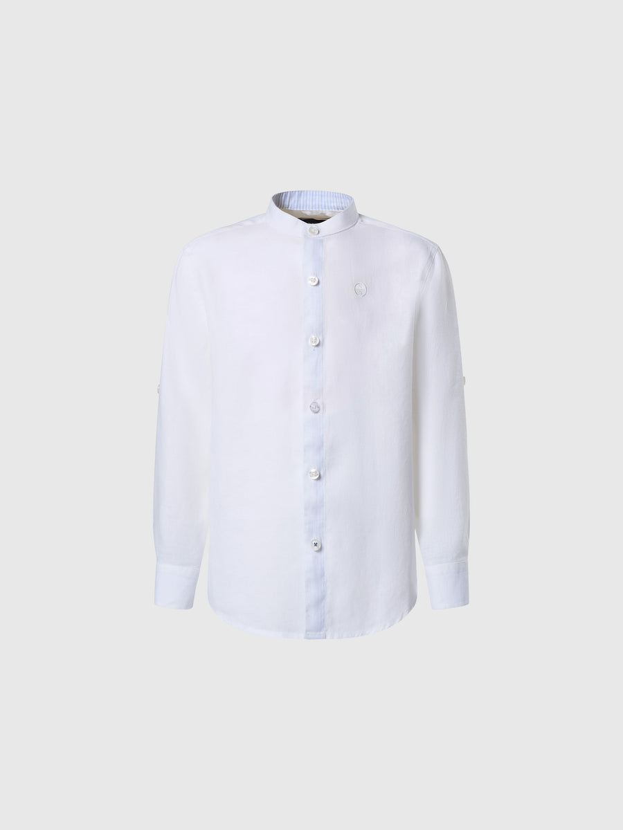 A breezy addition to their warm-weather wardrobe, this kids' shirt is made from European Flax™: certified GMO-free fibers grown in Europe without the use of irrigation. Styled with a sleek Mandarin collar, it features an embroidered logo on the chest for a signature North Sails touch.