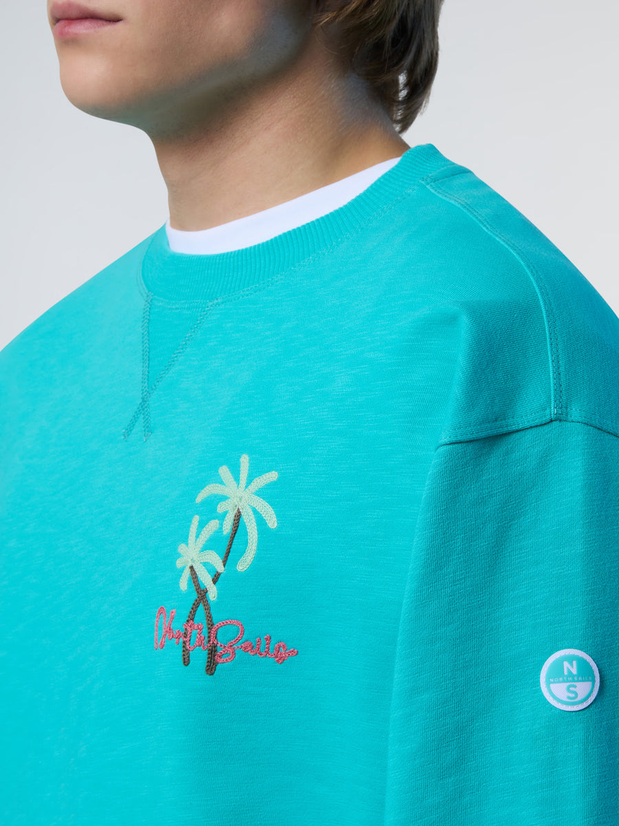 Men's crew-neck sweatshirt made from slub organic cotton. Embellished with an embroidered palm tree graphic and North Sails lettering on the chest.