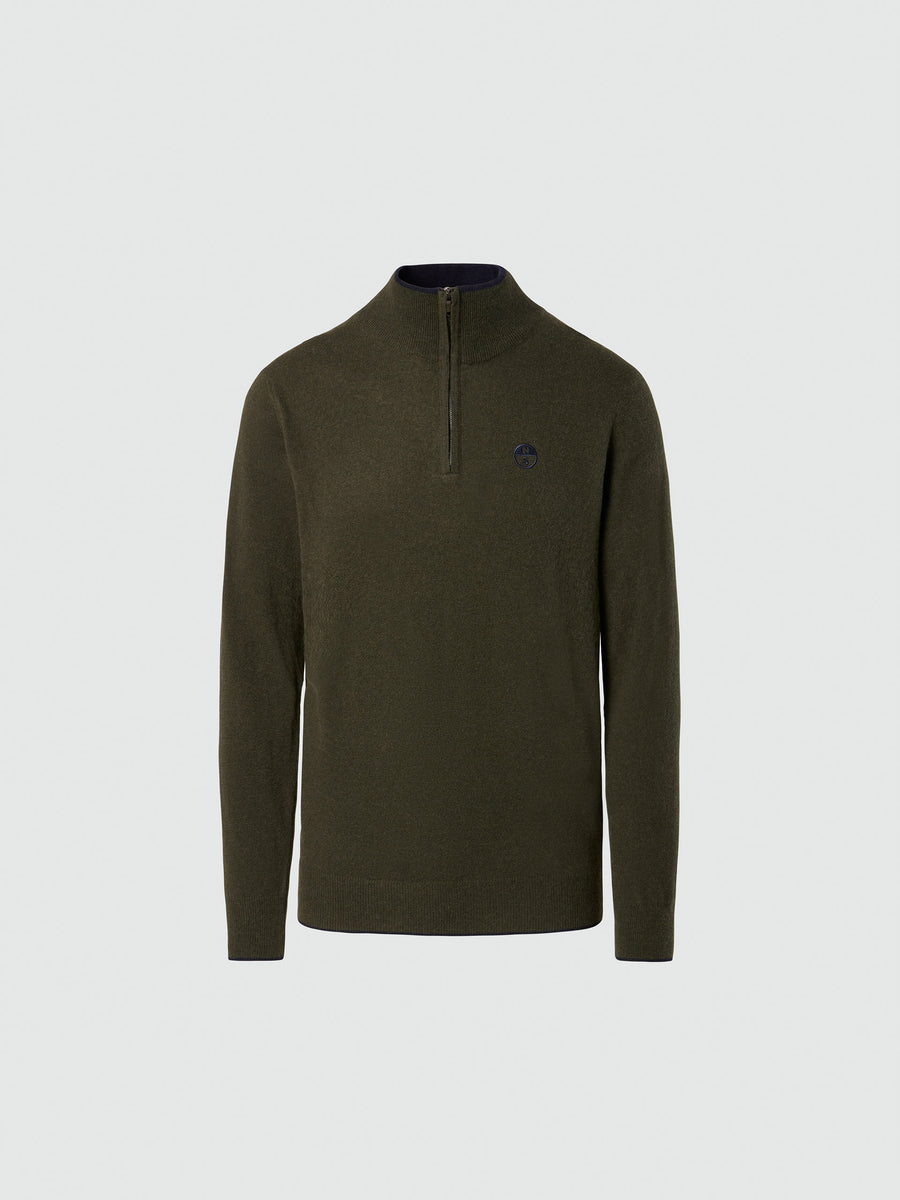 A layering hero for effortless style in between seasons. This high-neck sweater with half-zip closure is knitted from an eco-cashmere blend, containing recycled fibers in line with our commitment to protecting the planet. Finished with snug ribbed trims and an embroidered North Sails logo on the chest.