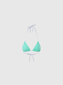 Haut de bikini triangle pour femmes, en LYCRA® écologique, fabriqué à partir de matériaux recyclés. Liens à nouer et imprimé à logo caoutchouté.
