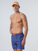 Short de bain pour hommes, en polyester recyclé, offrant un effet lin texturé. Complété par un écusson à logo coloré sur la jambe gauche.