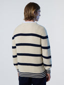 Pull pour hommes, tricoté en coton biologique. Design rayé avec écusson North Sails sur la manche.