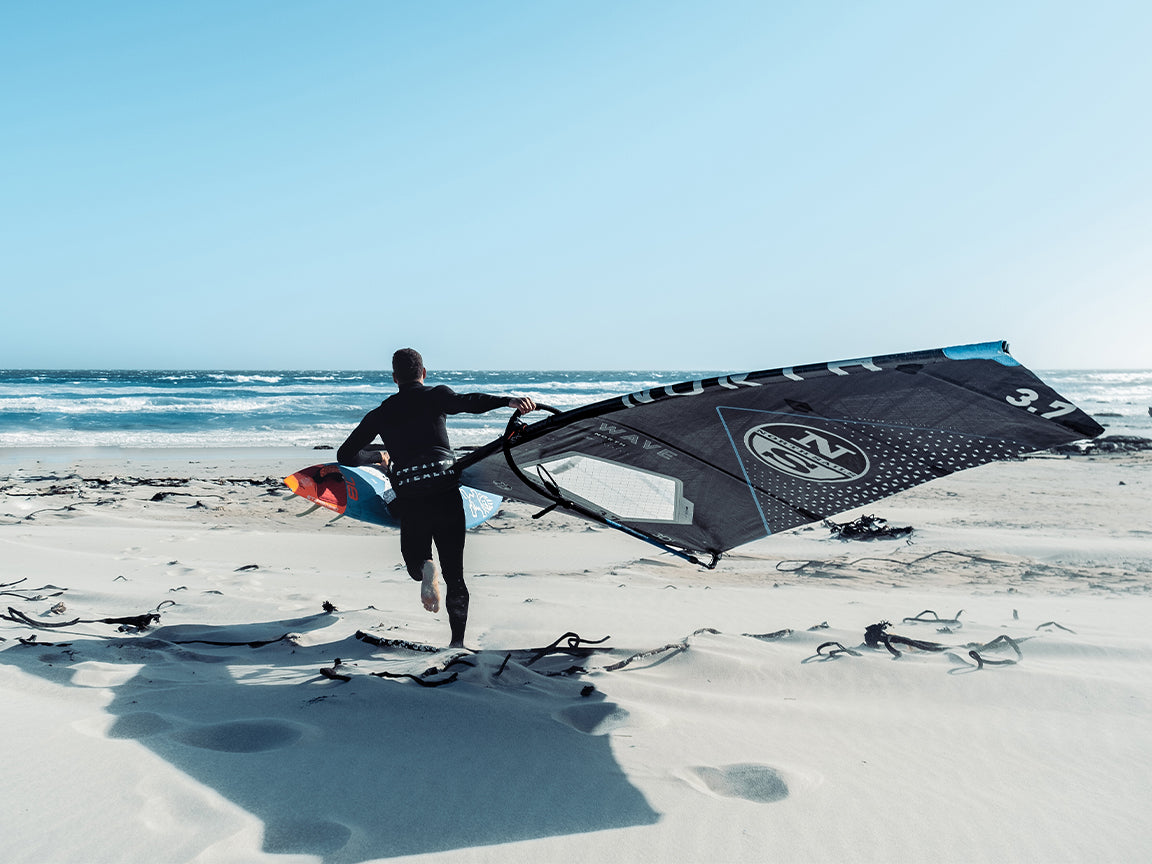 An oversized foam plug is placed on the top of all mast bottom pieces and extensions, cleaning the sand from the top piece prior to inserting the bottom piece, and keeping the sand out during sailing.