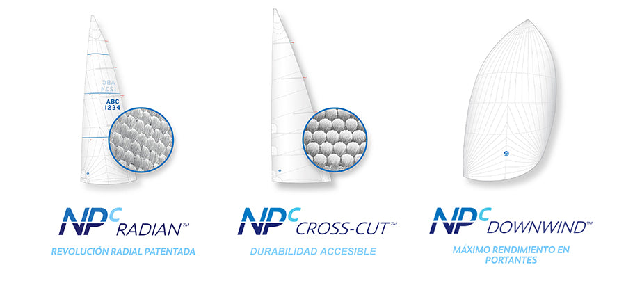 Acrónimo de North Panel Cloth, son las siglas con las que en North Sails denominamos a la familia de velas fabricadas con tejido poliéster. Nuestra firma cuenta con una larga tradición en fabricación de velas de dacron desde la introducción de esta fibra para la fabricación de velas en 1950. Con el tiempo hemos perfeccionado su diseño, manufactura y acabado, alcanzando un nivel de perfección inédito que aplicamos en tres gamas: NPC Cross-Cut (la más polivalente, fabricada con tejido NorDac Fill), NPC Radian (menor estiramiento y mayor rendimiento que cualquier otra lona de poliéster no laminado) y NPC Downwind (para un máximo rendimiento en portantes).