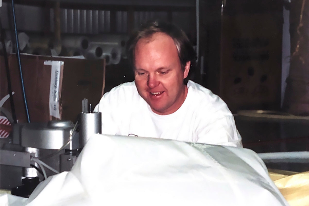 Peppe 1996. Mycket har hänt under årens lopp, inte minst på materialsidan. Men en hel del är sig också likt: Dacron är fortfarande ett gångbart alternativ och symaskinen på bilden används faktiskt än idag.